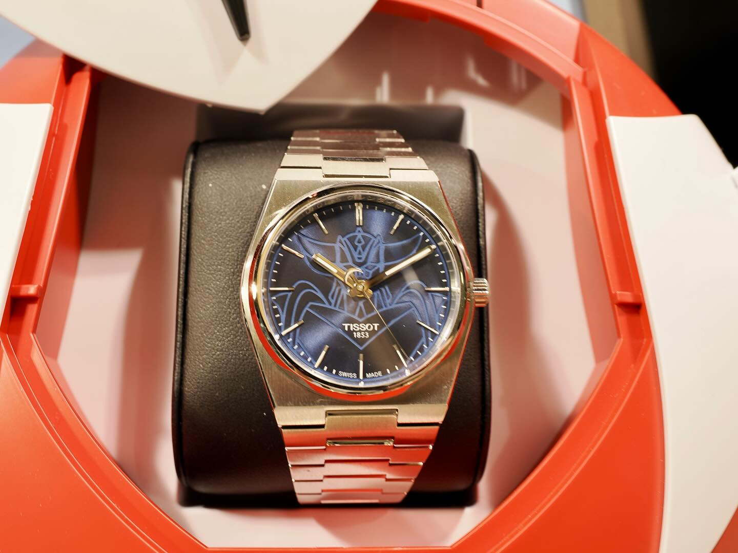 ✔️ Cadran bleu texturé avec accents rouges et index Lumibrite